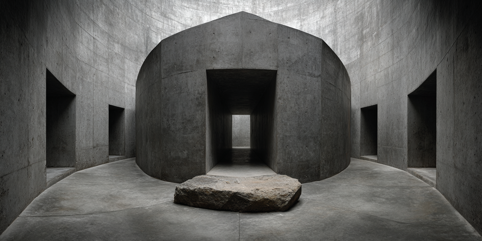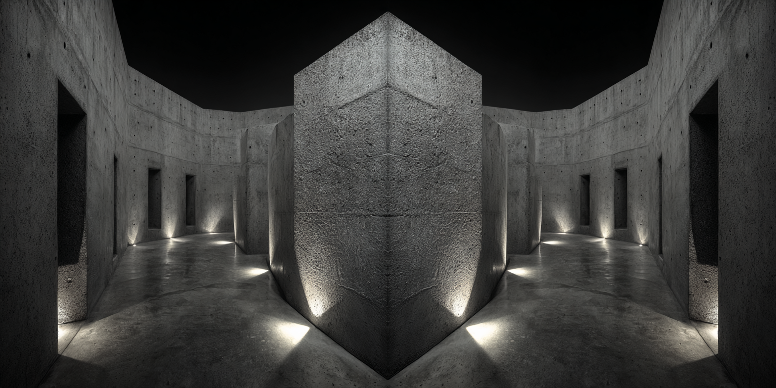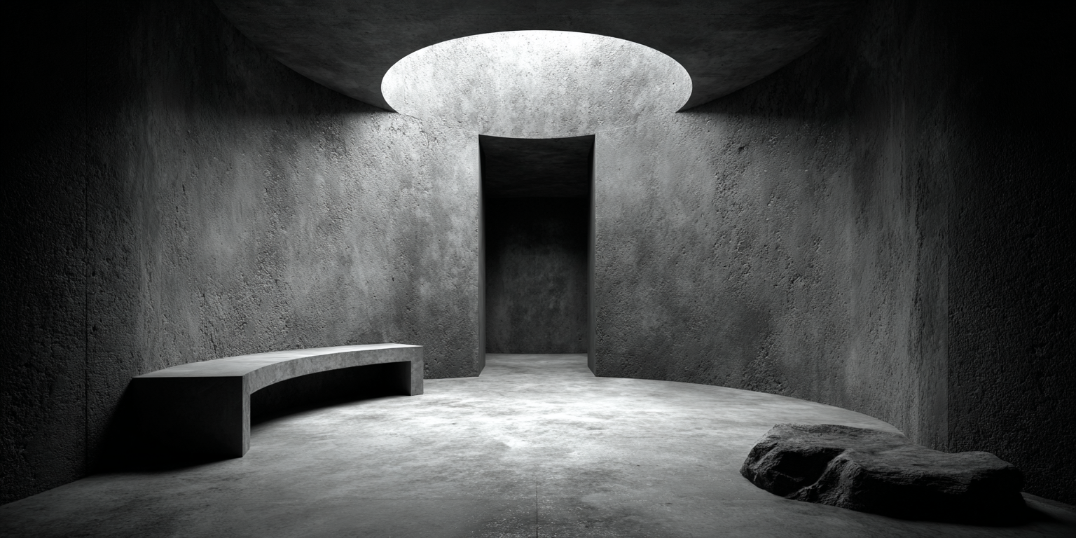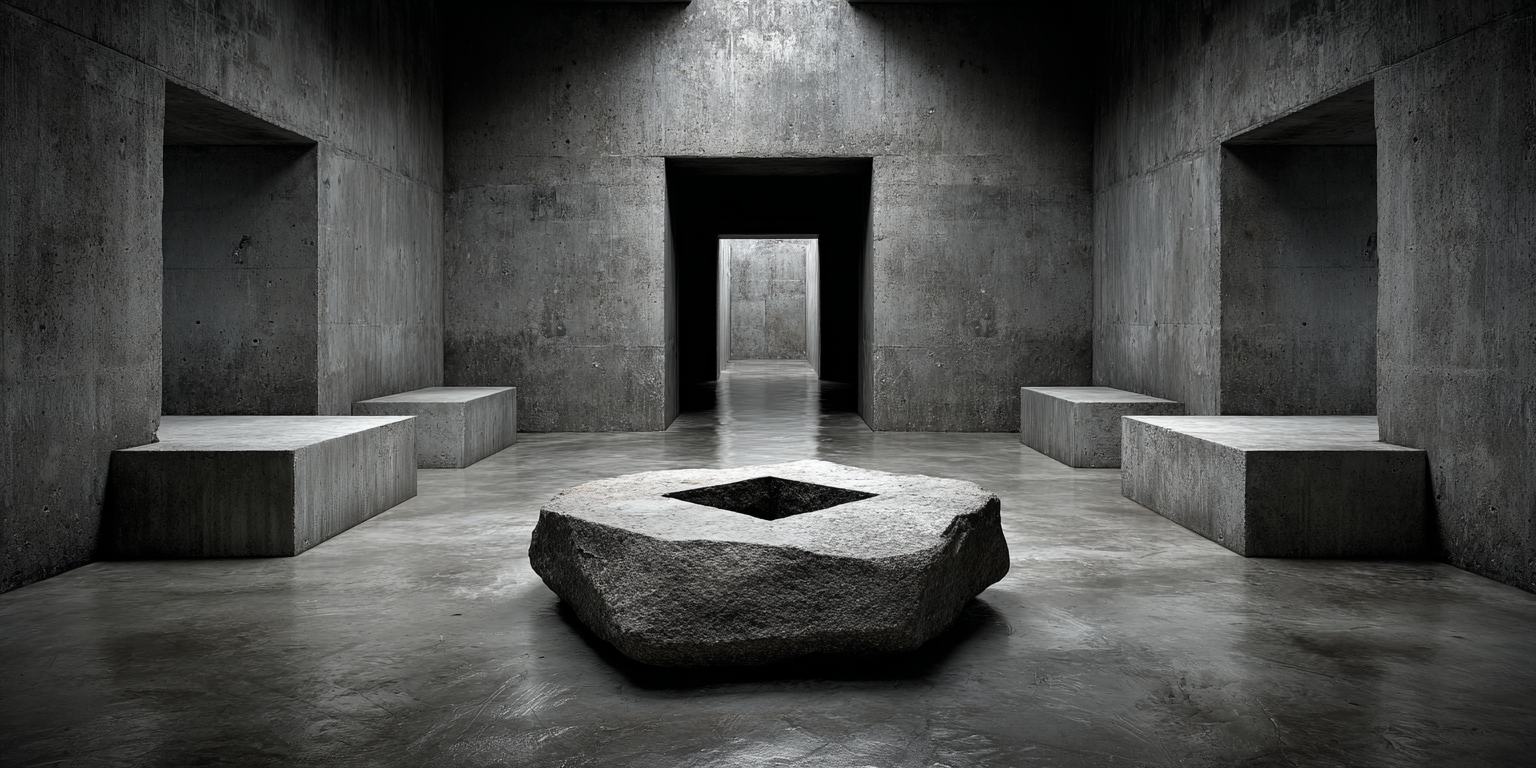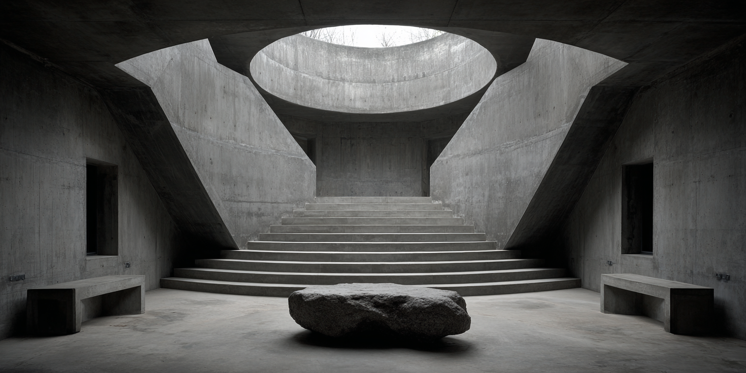 Die dargestellten Strukturen aus Beton, Stein und Licht sind keine Gebäude im klassischen Sinne. Sie sind Denkfiguren. Orte, an denen Architektur von ihrer Zweckbindung befreit wird und sich in ein Medium des Nachdenkens