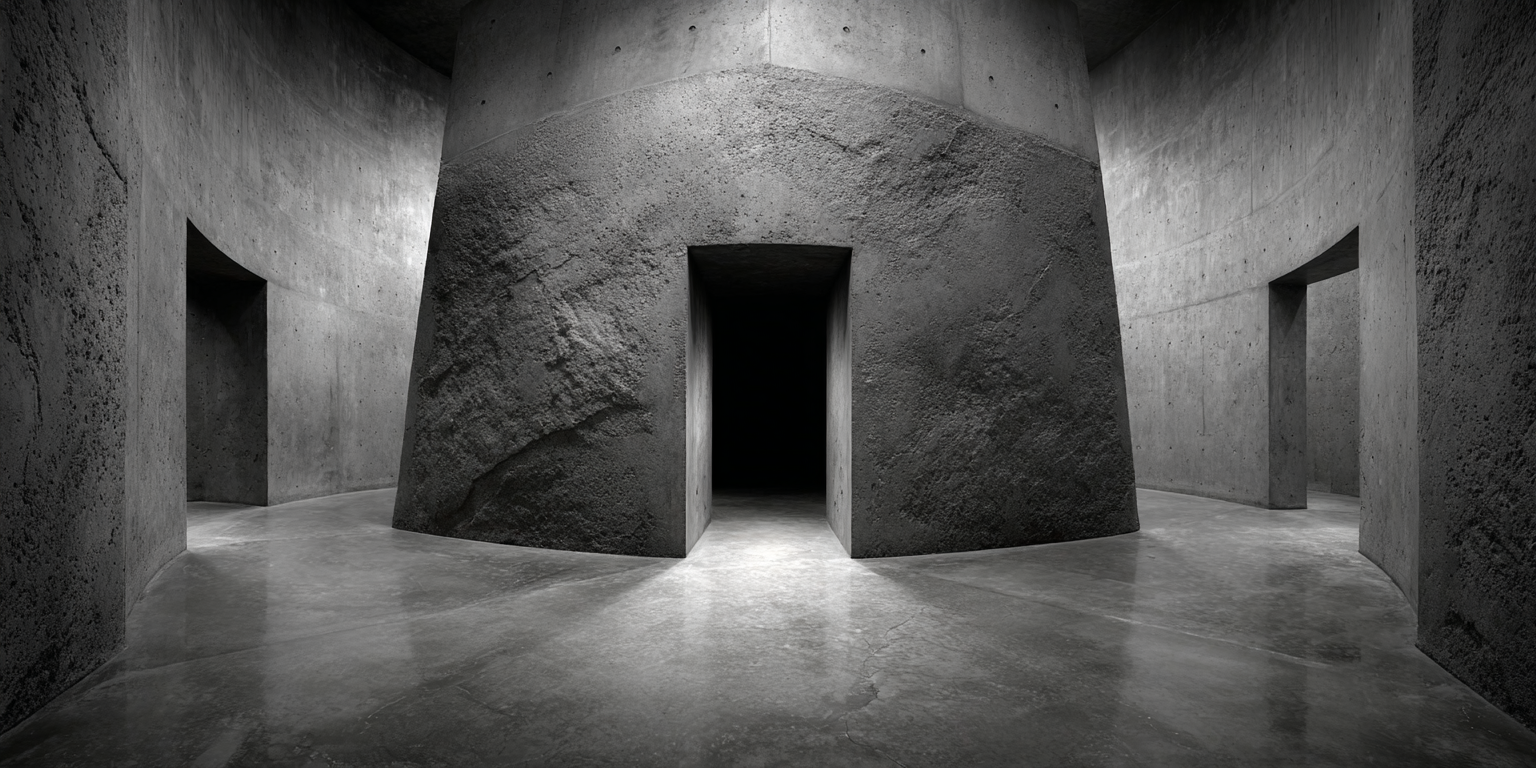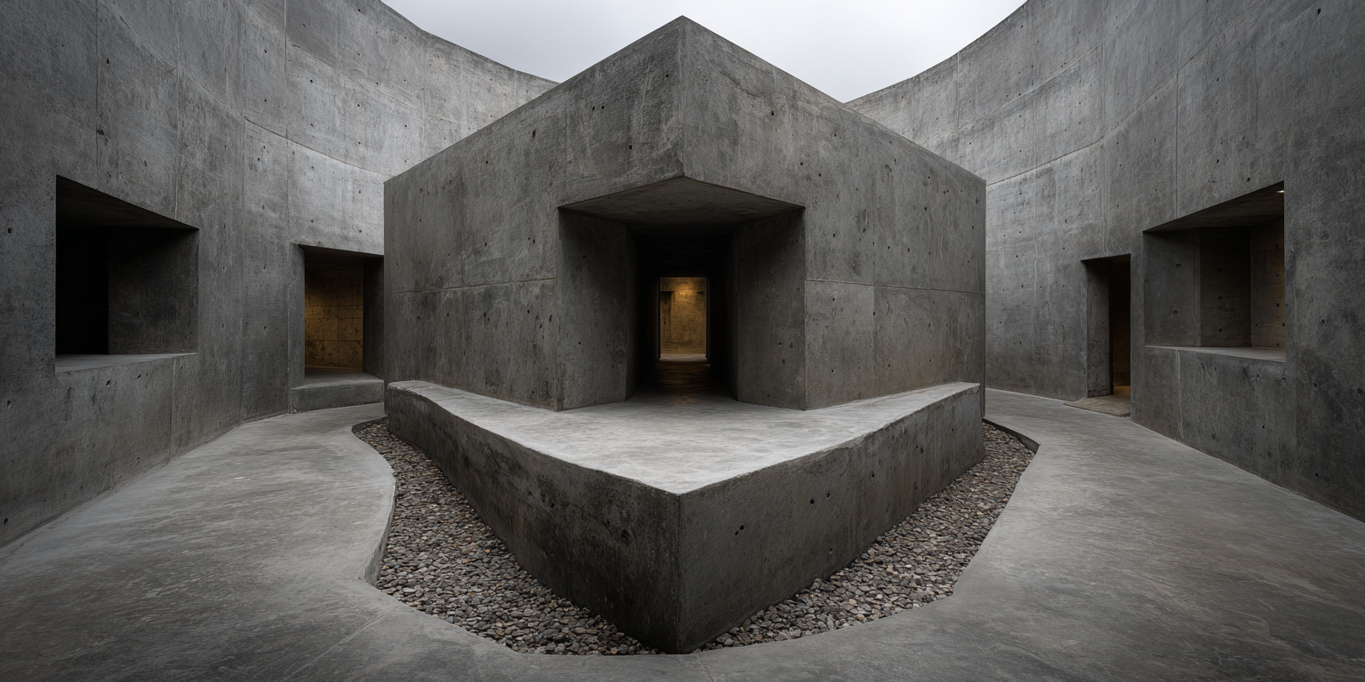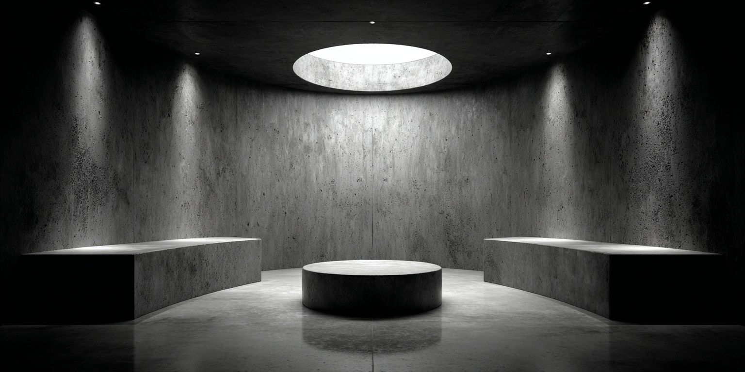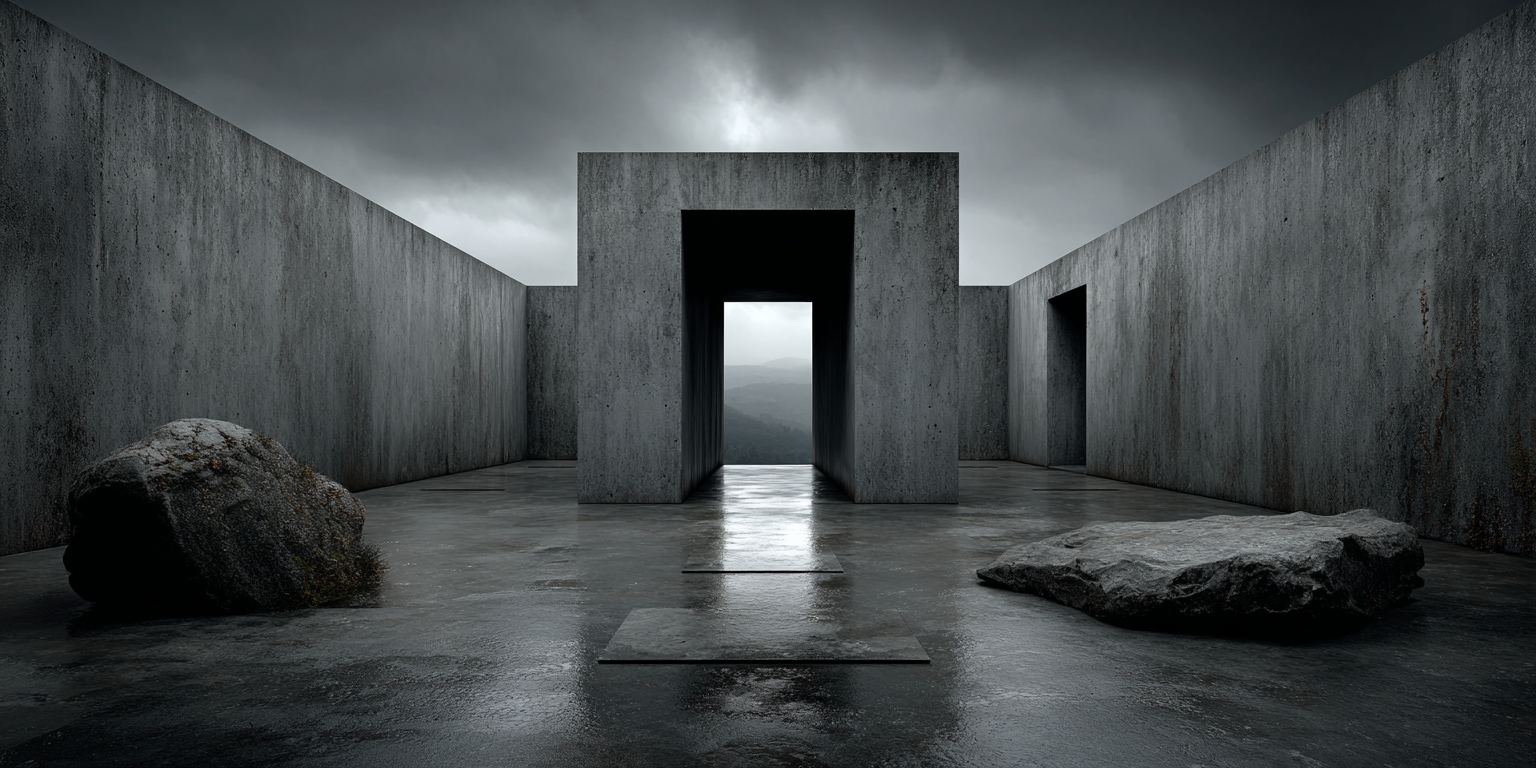 Die dargestellten Strukturen aus Beton, Stein und Licht sind keine Gebäude im klassischen Sinne. Sie sind Denkfiguren. Orte, an denen Architektur von ihrer Zweckbindung befreit wird und sich in ein Medium des Nachdenkens