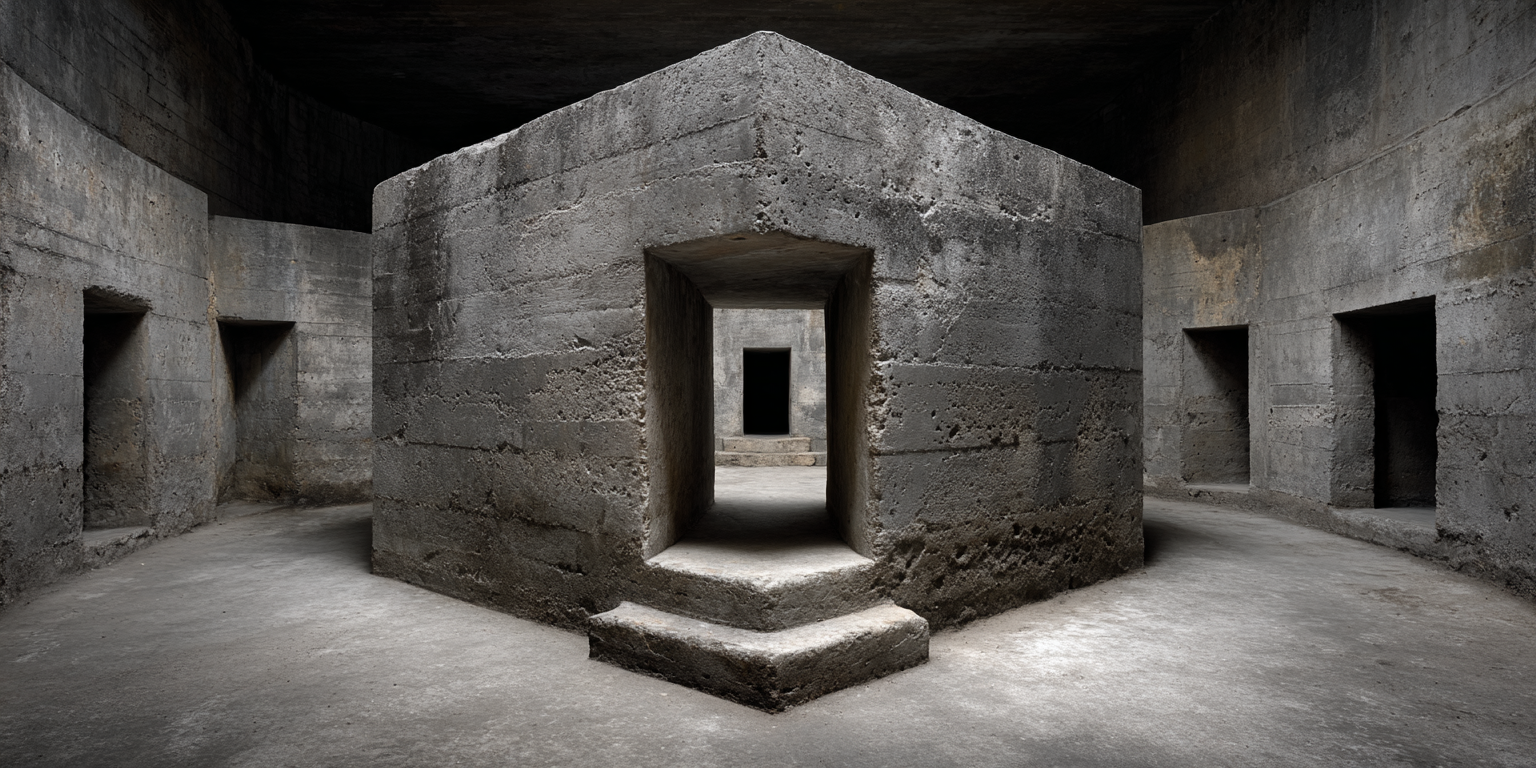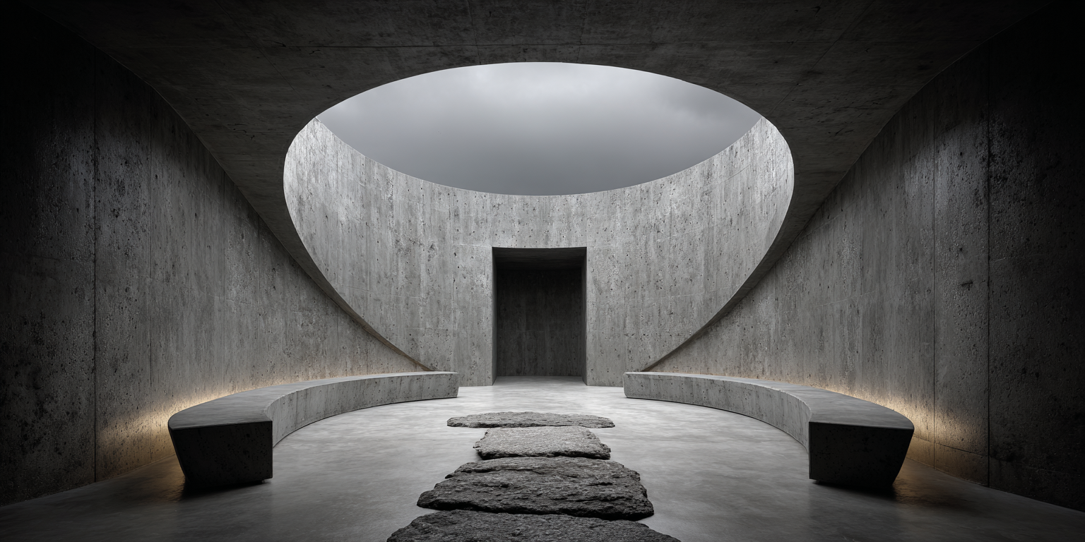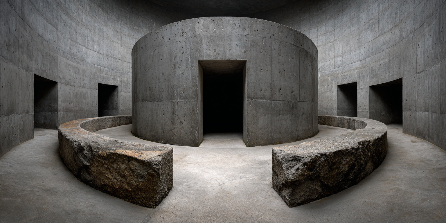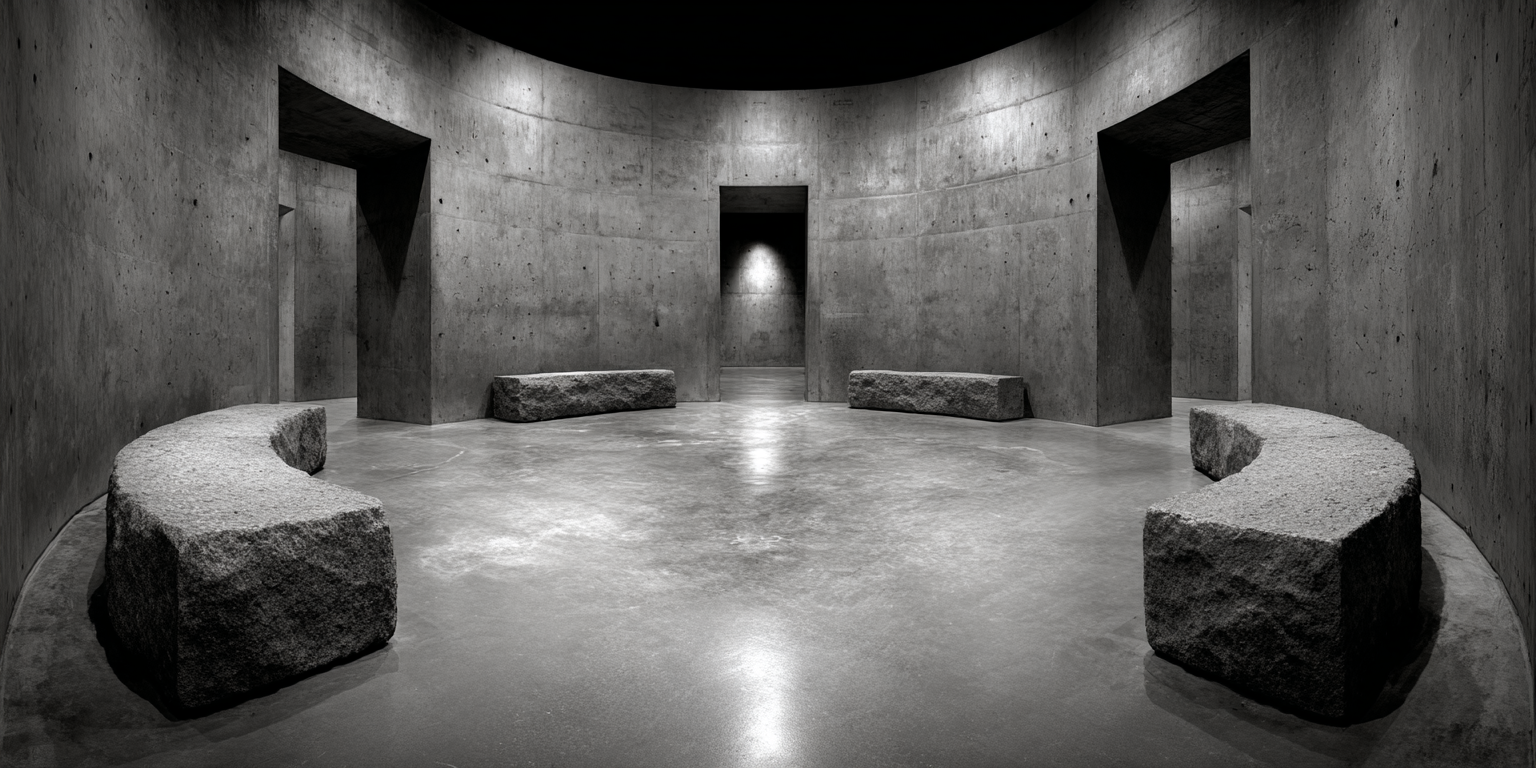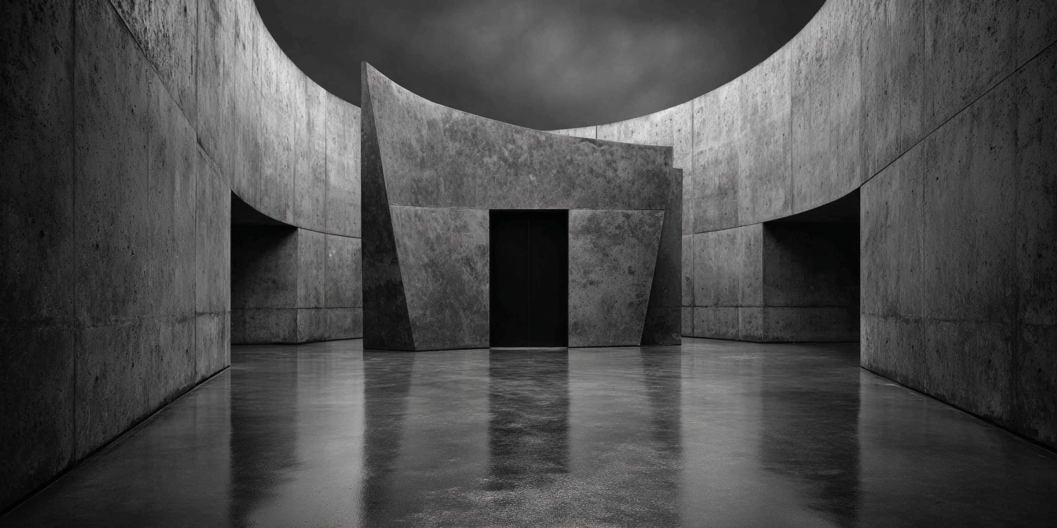 Die dargestellten Strukturen aus Beton, Stein und Licht sind keine Gebäude im klassischen Sinne. Sie sind Denkfiguren. Orte, an denen Architektur von ihrer Zweckbindung befreit wird und sich in ein Medium des Nachdenkens