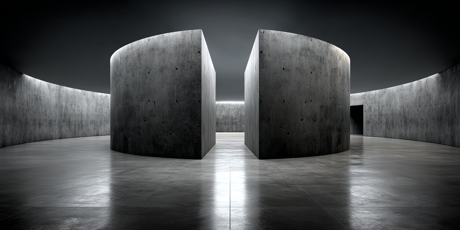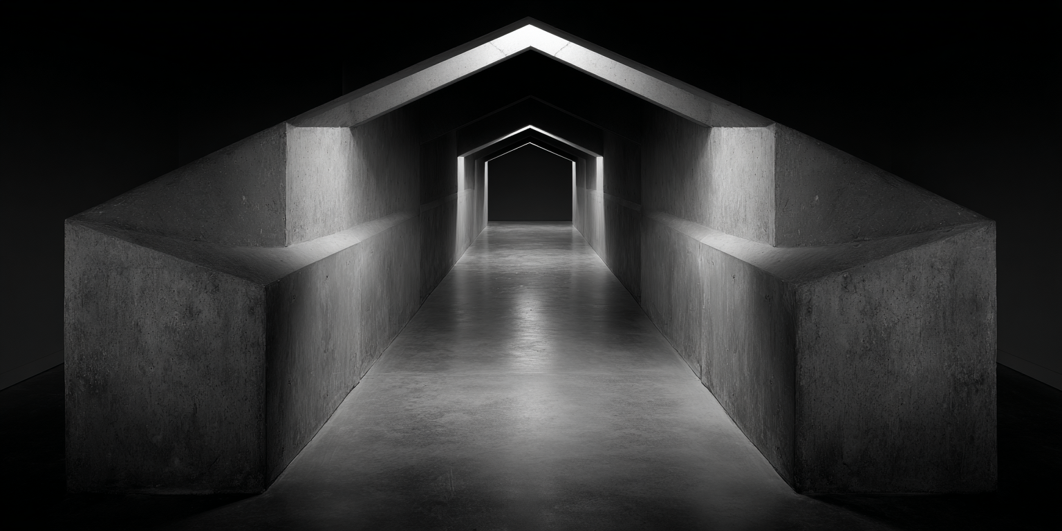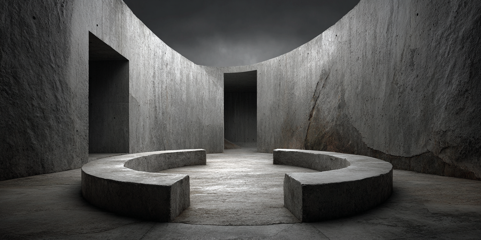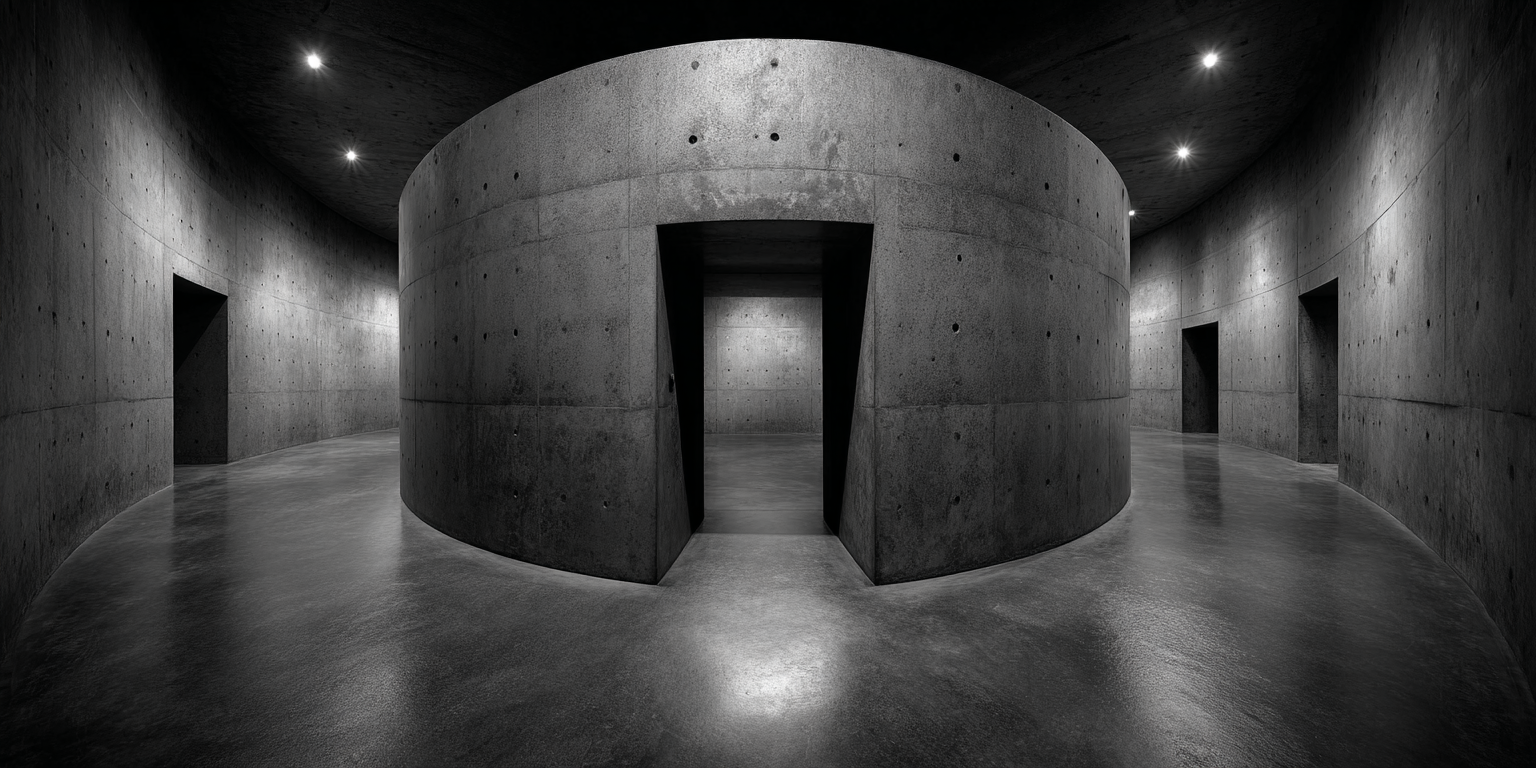 Die dargestellten Strukturen aus Beton, Stein und Licht sind keine Gebäude im klassischen Sinne. Sie sind Denkfiguren. Orte, an denen Architektur von ihrer Zweckbindung befreit wird und sich in ein Medium des Nachdenkens