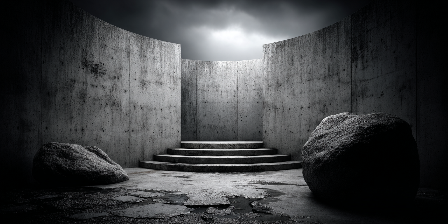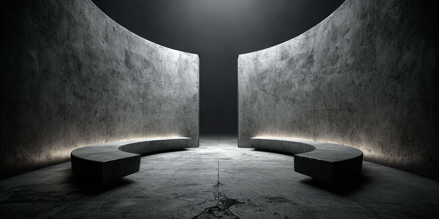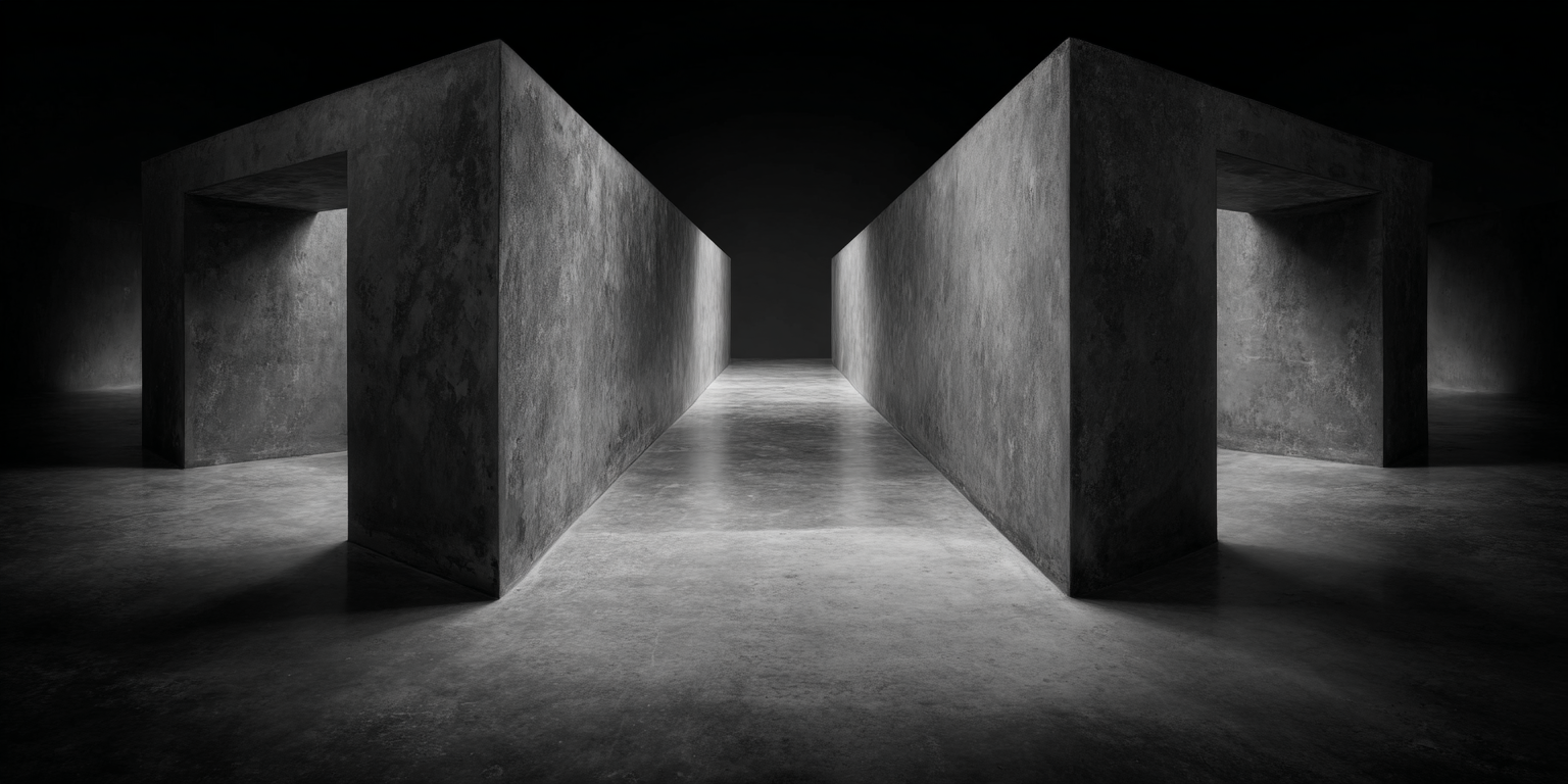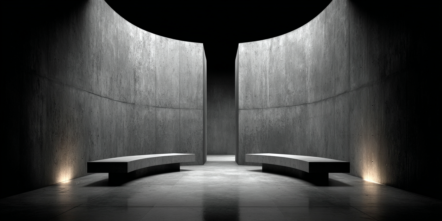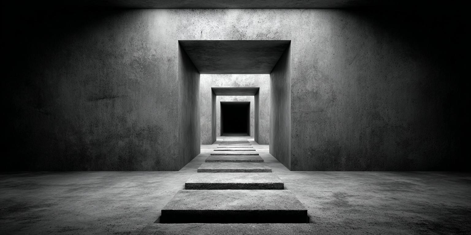 Die dargestellten Strukturen aus Beton, Stein und Licht sind keine Gebäude im klassischen Sinne. Sie sind Denkfiguren. Orte, an denen Architektur von ihrer Zweckbindung befreit wird und sich in ein Medium des Nachdenkens